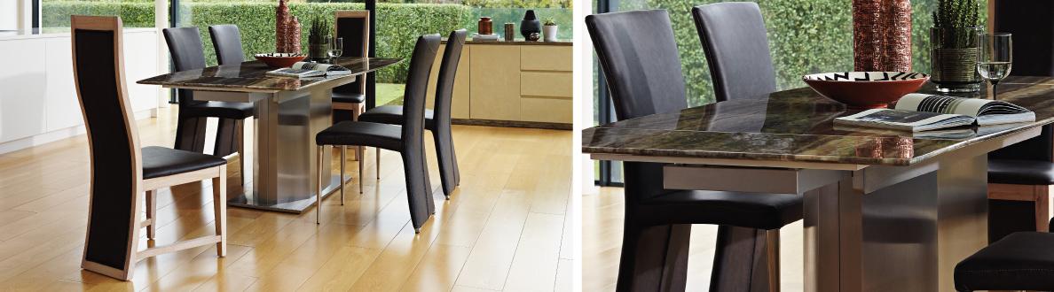 You should choose a table length that allows for an even number of chairs to be spaced appropriately along the sides. Bespoke glass tables · high quality glass tables from glass vault furniture. Extending dining table with 6 chairs and matching display cabinet. Mateo extending dining table + liam chair. How to pick the right dining table and chairs a space saver dining table has unique features and mechanisms that allow you to extend it to create a huge dining surface.