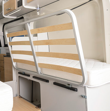 Camper conversion with electric bed lift system diy bed lift with two winches of 900 kg 60 euro each.